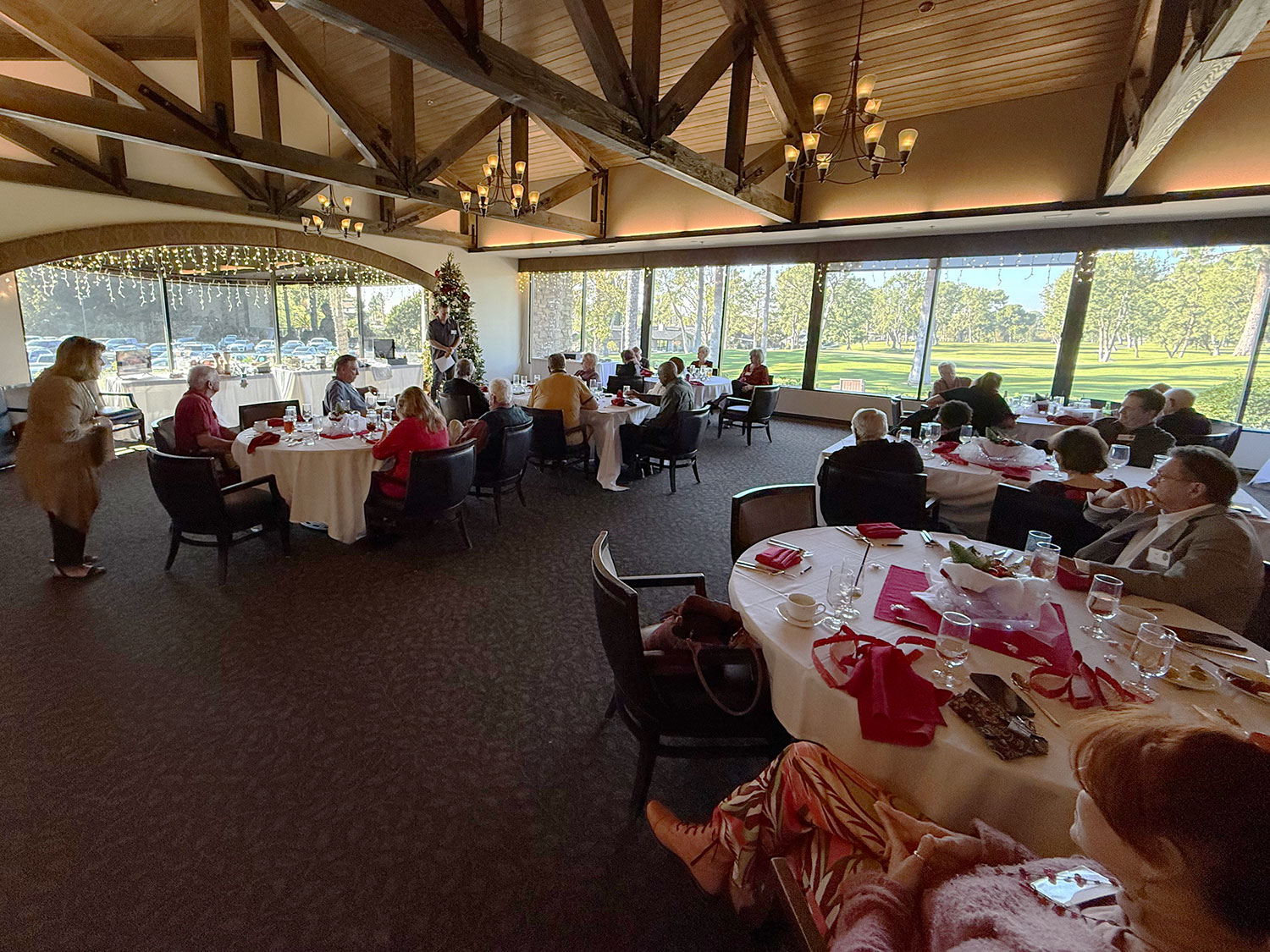This was the last event of the year, and as it has been for many years, our Holiday Banquet marked the final gathering of 2025. This year, the banquet took place at the Yorba Linda Country Club, a beautiful place nestled in the Anaheim Hills. Members were asked to follow a casual, yet chic dress code, and everyone looked festive, adding an extra touch of holiday spirit.